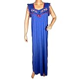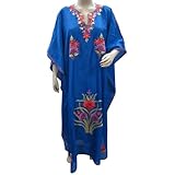 Boho Kaftan Patio Dresses Floral Embroidery Royal Blue Long Kaftans Resort Wear M