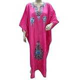 Womens Kaftans Kashmir Crewel Embroidered Caftans Bright Pink Paper Silk