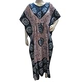 Mogul Interior Women's Batik Print Cotton Kaftan Patio Lounge Wear Dress