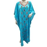 Kaftans Blue Kashmir Crewel Embroidered Abaya Caftans Kimono Sleeves Xxl