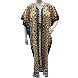 Moroccan Kaftan Dress Beige Brown Printed Cotton Caftans Lounger