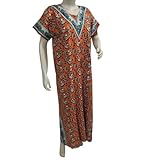 Kaftans Orange Floral Cotton Caftans for Women M
