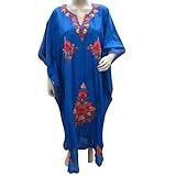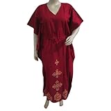 Designer Kaftan Maroon Red Embroidered Cotton Caftans Dresses Xxl