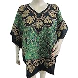 : Kaftan Dress Nightwear Green Embroidered Resort Wear Kaftan Black Mirror Embroidered Resort Wear ...