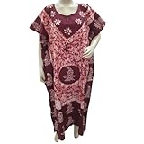 Kaftans Pink Maroon Batik Paisley Cotton Caftans Patio Dress