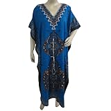 Boho Kaftans Tribal Print Caftan Blue Muumuu Abaya Dress One Size