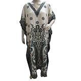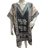 Bohemian Caftan Black & Beige Elephant Print Dress Kaftan Plus Size