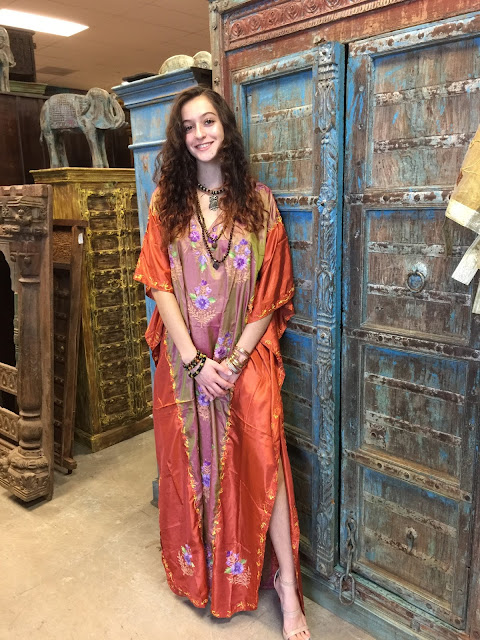 Kashmiri artisan embroidered silk caftans in beautiful lustrous fabric and cotton crepe are so exotic and chic, kimono sleeves and side slits give them easy style. Dress up in the kaftans for the holiday dinners and getaways or lounge in your cabin with a hot cup of cocoa. Bollywood inspired caftans are stunning fashion statements and great quality gifts too.