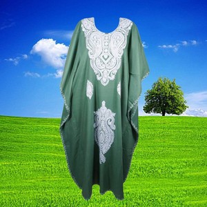The hand-embroidered caftan dresses feature loose and flowy designs, adorned with slits on the side for a touch of contemporary flair. Crafted from recycled silk, these caftans are not only soft and luxurious but also environmentally conscious, making them perfect as beach cover-ups or for your cruise holiday.